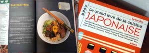 Ce livre coûte un peu plus cher que les autres livres mais la qualité des recettes en vaut la peine. Il est exclusivement dédié à la cuisine japonaise avec plus de 150 recettes détaillées. Le mérite du livre est de regrouper l’essentiel de la cuisine japonaise mais également d’avoir le souci du détail. Ainsi, pour chaque recette, vous êtes accompagné pas à pas jusqu’à l’aboutissement de votre plat, jusqu’aux ornements.
