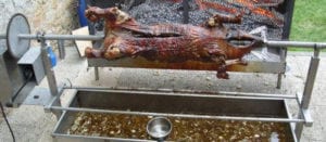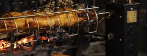 Un tournebroche tourne à une vitesse lente à feu doux. La viande n’est pas grillée. Elle rôtit en fait, tout en absorbant un peu de saveur fumée. Comme la viande est retournée, elle cuit uniformément de tous les côtés.