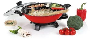 Pensez alors à privilégier les woks électriques qui sont au moins accompagnés d’une spatule en bois, d’un couvercle, d’une pince à aliments et d’une grille garde-chaud. Le panier pour la cuisson, le caquelon pour les fondues et les coupelles pour sauce seront par ailleurs des accessoires qui viendront étoffer la panoplie des woks électriques.