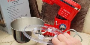 Parlons maintenant des accessoires fournis avec ces robots de chez Phisinic. Quel que soit le modèle, vous retrouverez un fouet, un crochet, un batteur plat, le bol du robot et un couvercle anti-projections.