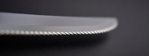 Le couteau à steak dentelé est caractérisé par de petites dents sur le bord. À première vue, ce type de couteau à l’air plus tranchant. Toutefois, ce type de couteau peut parfois être difficile à affûter.