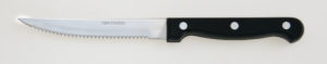 Le couteau à steak est une version plus tranchante du couteau de table conventionnel. Il est spécialement conçu pour couper aisément la viande plus fine sans la hacher ou la déchiqueter. Il permet de passer plus de temps à savourer sa viande qu’à la couper.