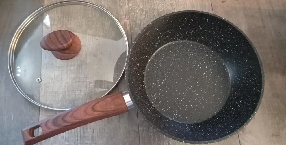 À l’ouverture, on est immédiatement séduit par le style moderne du revêtement granité noir, les poignées imitation bois et les couvercles épais cerclés d’inox. Tout semble pensé pour être à la fois esthétique et fonctionnel. Les matériaux inspirent la confiance, les finitions sont propres, et le poids de chaque ustensile est équilibré : ni trop léger pour faire cheap, ni trop lourd pour être encombrant.