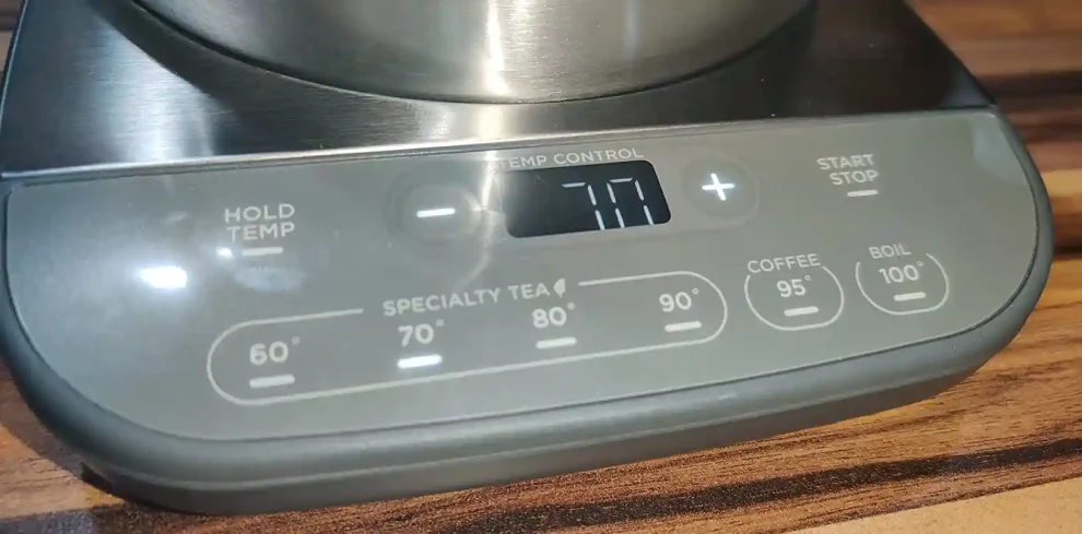 Une autre fonctionnalité intéressante est la capacité de maintenir l’eau à la température sélectionnée pendant 30 minutes. Cela s’est avéré particulièrement utile lorsque je préparais plusieurs tasses de thé pour des invités, sans avoir à refaire chauffer l’eau entre chaque service. Cela dit, le système de maintien de la température n’est pas parfait. La perte de chaleur est perceptible, surtout après 15 à 20 minutes, ce qui signifie que l’eau peut ne pas rester aussi chaude qu’espéré pendant toute la demi-heure.