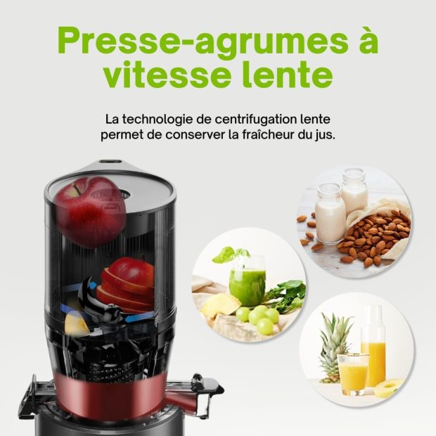 L’un des principaux critères pour juger un extracteur de jus est bien évidemment sa performance d’extraction. Sur ce point, le Hurom H320N excelle. J’ai testé cet appareil avec une variété d’ingrédients, allant des pommes aux épinards, en passant par les carottes et le céleri. Les résultats ont été remarquables. Pour 1 kg de pommes, j’ai pu extraire environ 740 ml de jus, ce qui est un rendement excellent, surpassant de nombreux autres modèles sur le marché.