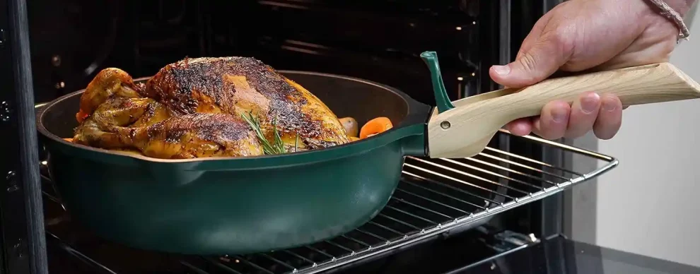 Les poignées amovibles se clipsent d’un geste et tiennent vraiment. J’ai secoué un risotto plein à ras bord : rien n’a bougé. L’idée d’avoir une petite poignée « oreille » pour passer au four, et une grande pour cuisiner au quotidien, est simplement géniale. C’est aussi ce qui distingue Cookut d’une poêle Tefal traditionnelle ou même d’une cocotte Le Creuset. Côté rangement, plus de manche qui dépasse du tiroir… On gagne facilement un bon tiers d’espace. Et que dire du design ? Elle est tout simplement magnifique. Franchement, elle pourrait presque faire office d’objet décoratif. J’aime beaucoup.