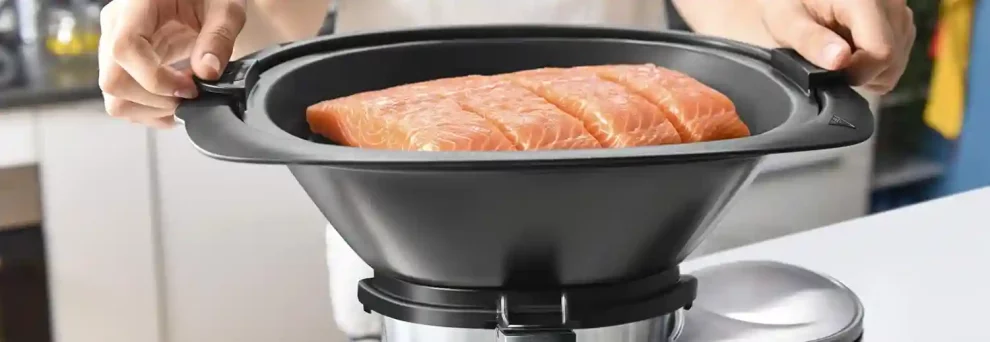 Le Moulinex ClickChef excelle également dans les cuissons à la vapeur et les cuissons lentes. Pour tester le mode vapeur, j’ai préparé des filets de poisson et des légumes. Grâce au panier vapeur interne et au cuiseur vapeur externe, l’appareil a réussi à cuire les aliments à la perfection, tout en préservant leur saveur et leurs nutriments. La vapeur douce et régulière garantit une cuisson uniforme, et le poisson était délicieusement tendre.