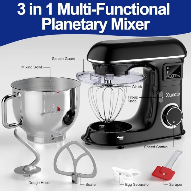 • [Robot Pâtissier 1500W & Systèmes planétaires]Zuccie Robot Pâtissier avec moteur haute performance de 1500 watts,répond à un large éventail de recettes et de besoins culinaires. 360° mouvement planétaire meilleur mélange des ingrédients.