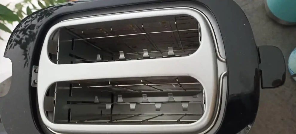 Pour continuer, j’ai trouvé le nettoyage plutôt aisé. Tout d’abord, le tiroir ramasse-miettes coulisse sans accrocs. Je vous conseille toutefois un vidage quotidien en usage intensif : moins de miettes = moins d’odeurs de brûlé et surtout un risque de départ de feu réduit. Le plastique extérieur se contente d’un chiffon microfibre humide ; aucune trace de doigts persistante n’a été observée sauf si vous avez les doigts un peu gras. Mais globalement c’est plutôt satisfaisant je trouve.