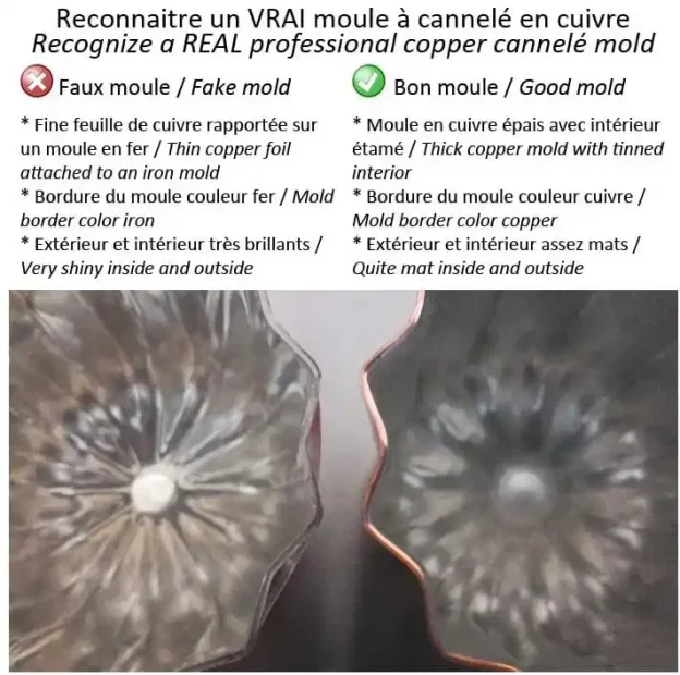 Le silicone donne un cannelé difforme et à la texture caoutchouteuse alors que la cuivre assure une belle tenue et une caramélisation parfaite du cannelé.