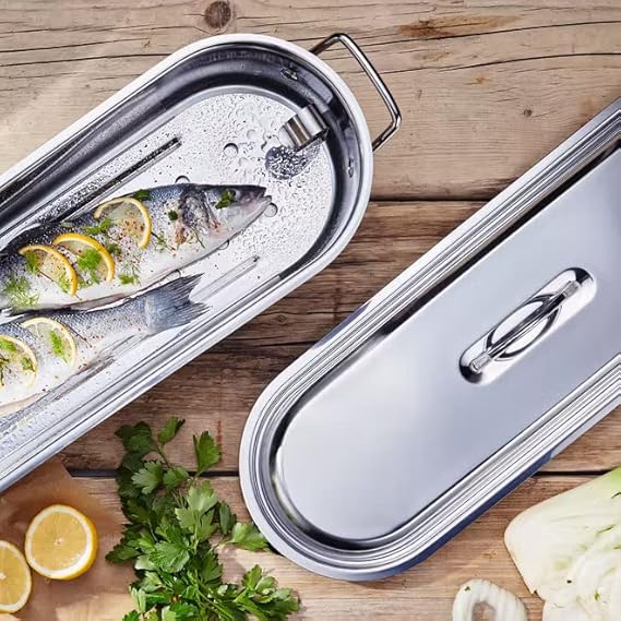 - Design Élégant : La poissonnière Baumalu 342625 présente un design élégant qui s’intègre parfaitement dans toutes les cuisines modernes et traditionnelles, ajoutant une touche de sophistication à votre espace culinaire tout en étant fonctionnelle et pratique pour la cuisson de vos plats de poisson préférés