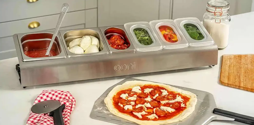 Si vous êtes à la recherche d’une saladette conçue spécialement pour les pizzas, la station de garnissage Ooni est une option intéressante. Ce modèle est compact, mais extrêmement fonctionnel, surtout pour les amateurs de pizzas qui veulent organiser leurs garnitures de manière efficace. Les récipients de différentes tailles, 1,6 litre et 0,8 litre, permettent de stocker une grande variété d’ingrédients. C’est un vrai plus pour ceux qui souhaitent tout avoir à portée de main lors de la préparation.