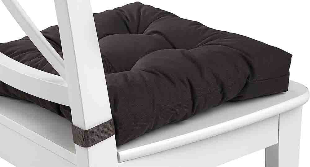 Je poursuis mon classement avec ce lot de 4 coussins de chaise NatureMark. Fabriqués à la main en 100 % coton, ces coussins sont un excellent choix pour apporter une touche de confort et de luxe à vos sièges. Avec leurs dimensions de 40 x 40 cm et leur rembourrage épais de 5 cm, ils vous garantissent une assise souple et moelleuse. Par ailleurs, tout en assurant un maintien ferme sur vos chaises, les rubans d’accroche solides sur chaque coussin apportent un style raffiné à l’ensemble. Proposées en différents coloris, dont l’anthracite, ces galettes de chaises n’auront aucun mal à s’intégrer à votre décoration intérieure ou extérieure.