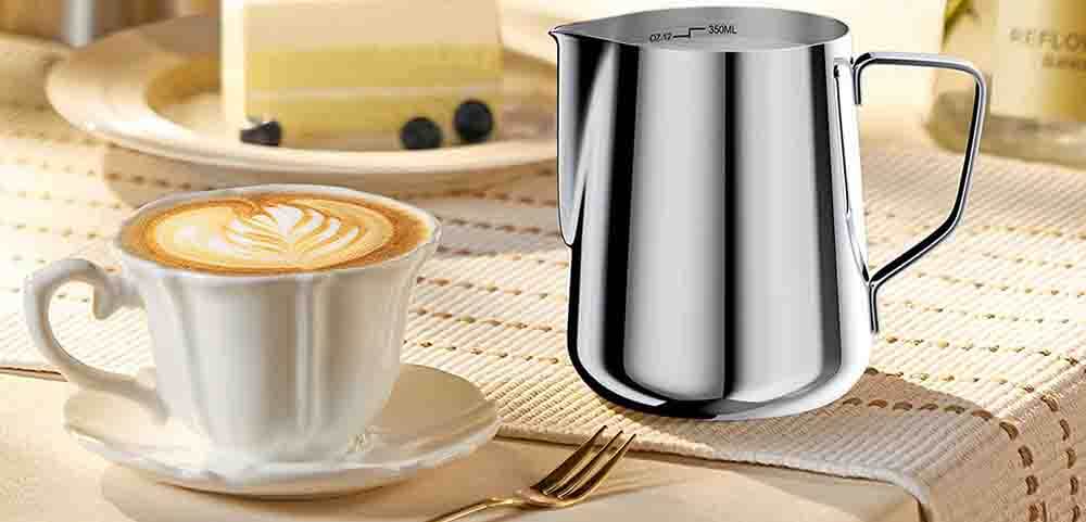 Vous pouvez également opter pour ce pot à lait de la marque Newaner. Avec ses marques de mesure jusqu’à 350 ml, cet ustensile permet de bien doser le lait ou la crème. Vous pouvez ainsi préparer des boissons délicieuses. Pour que cette dernière soit bien présentable, ce pichet à lait possède aussi une buse anti-goutte. De ce fait, les motifs sur le café seront plus précis et plus beaux.