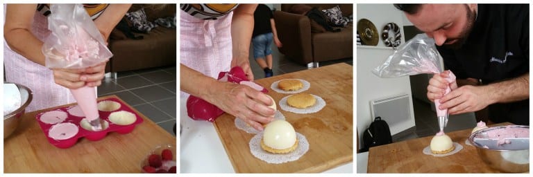 Mon atelier avec Christine Vendredi dernier, je me suis rendu chez la fille de Christine pour dispenser un atelier de pâtisserie sur les dômes chocolat-blanc framboise.